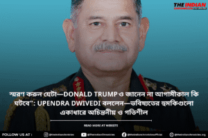 ভারতীয় সেনাপ্রধান Upendra Dwivedi বলছেন, আগামী দিনের হুমকি অস্থির, অনিশ্চিত ও জটিল — “ট্রাম্পও হয়তো জানেন না কাল কী হবে” বলে উদ্বেগ প্রকাশ।