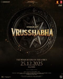 মোহনলালের “ভ্রুষভা” বড়দিন ২০২৫-এ বিশ্বজুড়ে মুক্তি পাচ্ছে — ভালোবাসা, প্রতিশোধ ও ভাগ্যের এক মহাকাব্যিক উপাখ্যান।