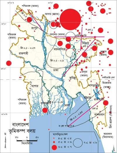 বাংলাদেশে ভূমিকম্পের উৎপত্তিস্থল ও মাত্রা