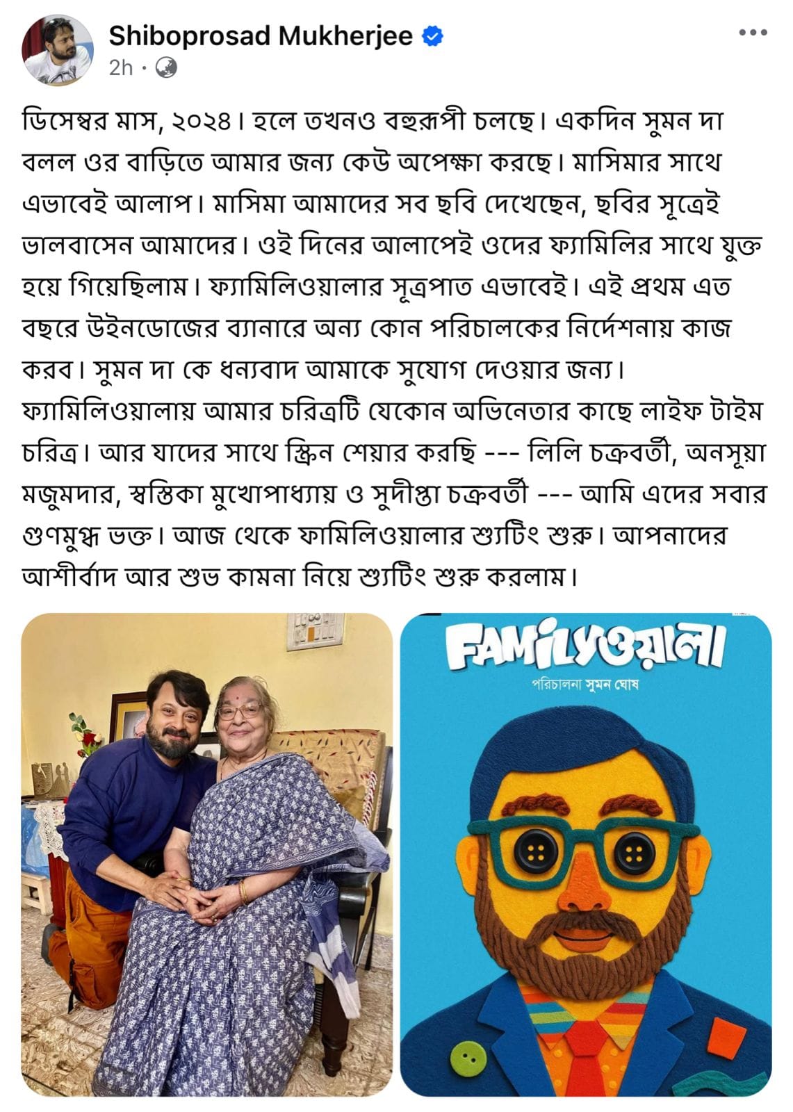 Familywala-তে শিবপ্রসাদ মুখোপাধ্যায়ের চরিত্রটি এমনভাবে নির্মিত হয়েছে, যেখানে তাঁর অভিনয়-ক্ষমতা পূর্ণমাত্রায় প্রকাশ পাওয়ার সুযোগ থাকবে। উইন্ডোজের আগের ছবিগুলিতে যেমন পরিবারকেন্দ্রিক গল্পে তিনি দর্শকের সঙ্গে সরাসরি সংযোগ স্থাপন করেছেন, এখানেও তেমনই এক বাস্তবঘন চরিত্রে তাঁকে দেখা যাবে।