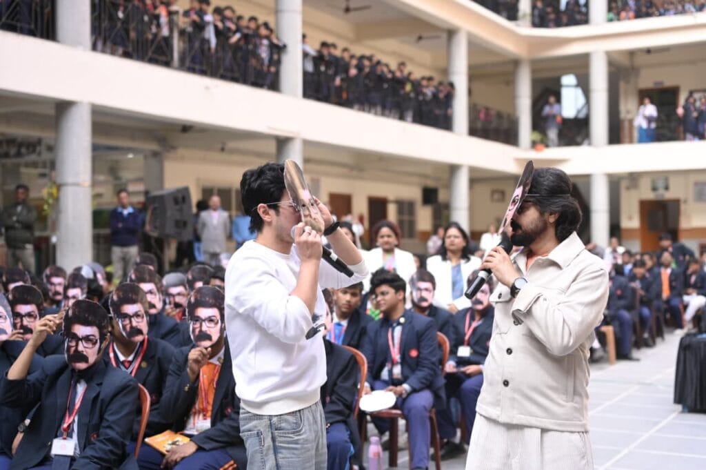 Techno India Group Public School-এ Vijaynagar’er Hirey ছবির টিমের বিশেষ স্কুল ভিজিটে তৈরি হলো এক প্রাণবন্ত উৎসবের আবহ। সকাল থেকেই ছাত্রছাত্রীদের উত্তেজনা ছিল চোখে পড়ার মতো—হাততালির গর্জন, হাসি আর কাকাবাবুর মুখোশে ভরে উঠেছিল পুরো প্রাঙ্গণ।
