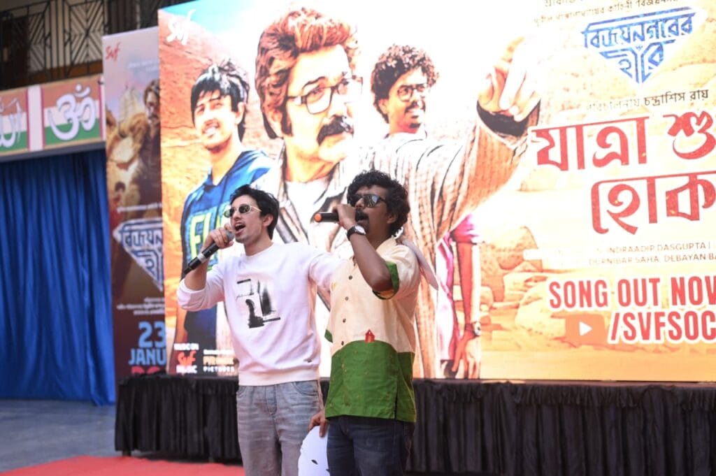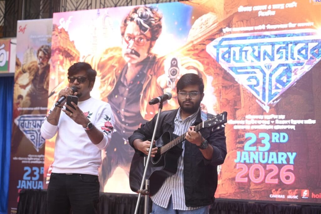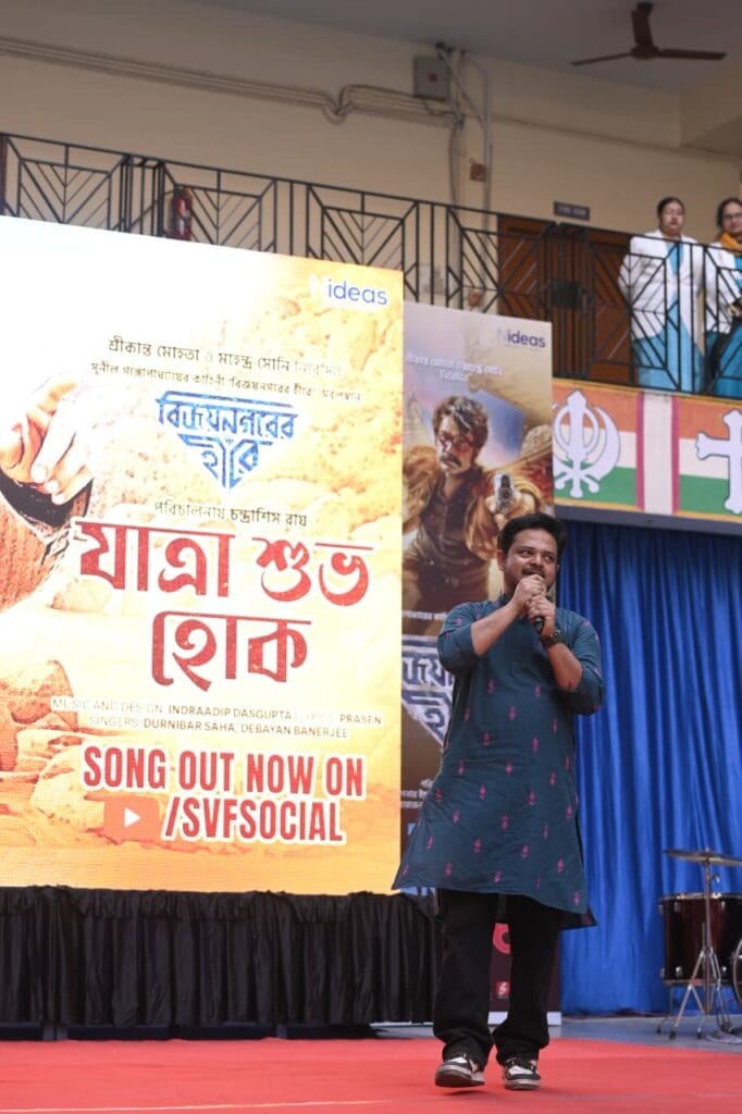 অনুষ্ঠানের অন্যতম উজ্জ্বল মুহূর্ত ছিল ছবির গান ‘যাত্রা শুভ হোক’-এর লাইভ পরিবেশনা। কণ্ঠশিল্পী Durnibar Saha ও Debayan Banerjee-এর কণ্ঠে গানটি যেন ছাত্রছাত্রীদের হৃদয়ে গভীর ছাপ ফেলল। করতালির গর্জনে বোঝা গেল—সঙ্গীত কীভাবে মুহূর্তে সবাইকে একসূত্রে বাঁধে।