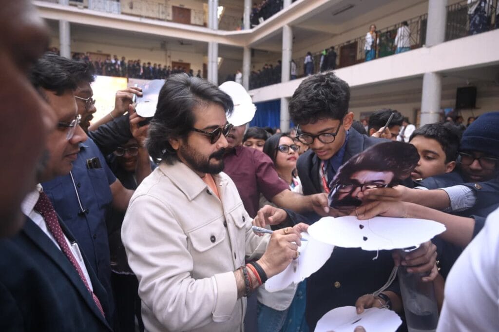 অনুষ্ঠানে উপস্থিত ছিলেন পরিচালক Chandrasish Ray এবং অভিনেতারা—Prosenjit Chatterjee, Aryann Bhowmik, Pushan Dasgupta ও Satyam Bhattacharya। তাঁদের স্বতঃস্ফূর্ততা আর সহজ ভঙ্গি ছাত্রছাত্রীদের মুগ্ধ করে।
