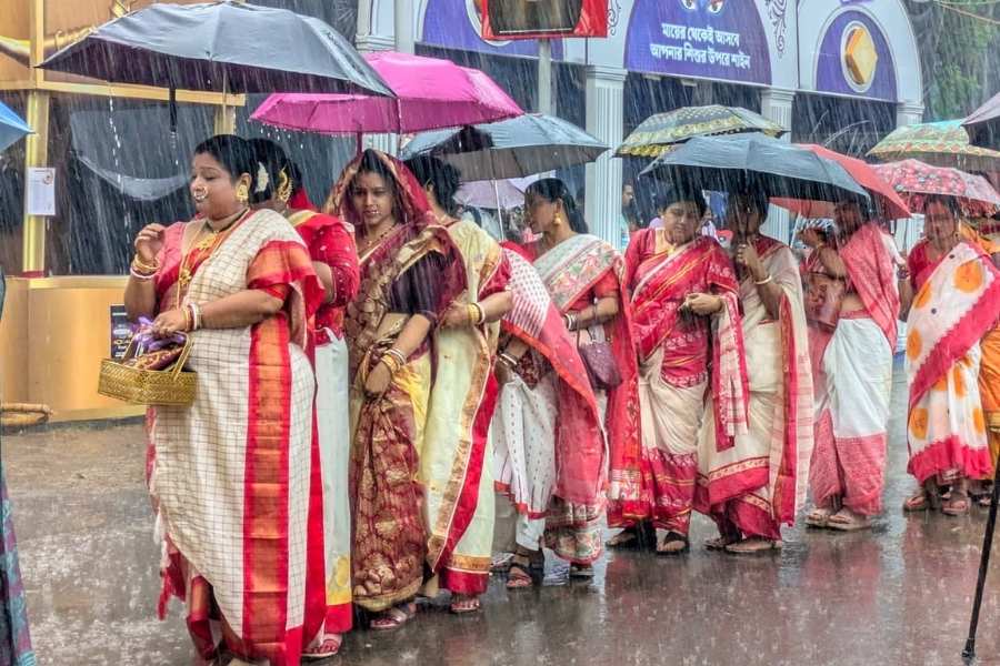কলকাতায় দুর্গাপূজা মানেই আবেগ, উৎসব এবং মিলনমেলা। তবে এ বছরের দশমীর দিন প্রবল বৃষ্টিপাত অনেকের আনন্দে কিছুটা বিঘ্ন ঘটিয়েছে। সকাল থেকেই আকাশ মেঘলা ছিল এবং দুপুরের পর থেকে বজ্রবিদ্যুৎসহ বৃষ্টি শুরু হয়। এর ফলে দশমীর সিঁদুর খেলা এবং প্রতিমা বিসর্জনের প্রস্তুতিতে সমস্যার মুখোমুখি হন পুজো কমিটি ও ভক্তরা। তবুও শহর জুড়ে উৎসবের আবহ অব্যাহত ছিল।